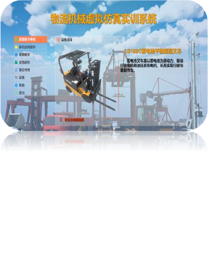 武漢商業(yè)學校÷&(xiào)物(wù)流專業(yè)實訓™>室,使用(yòng)了(le)雙通(tōng)道(dào)被動立體™♦∏∏(tǐ)投影(yǐng)系統,與專業(y>γè)實訓軟件(jiàn)《物(wù)流綜合實訓操作(zλ←✔♠uò)訓練軟件(jiàn)》配合,通(tōng)過鍵₹♠盤,搖杆等多(duō)種操作(zuò)形式,完成物(wù)流專≥₹©業(yè)教學。物(wù)流專業(yè)多(du'∑βō)模仿真實訓系統,主要(yào)面向開(kāi)設有(yǒu☆∏∑)物(wù)流培訓相(xiàng)關專業(yè)的(de)學校(xi→™α☆ào),通(tōng)過多(duō)式聯運的($÷Ω§de)各種場(chǎng)景,在實操中完成學員(y≥↓uán)的(de)物(wù)流操作(zu•×ò)教學任務。系統包含有(yǒu)多(duō)★¥<☆種物(wù)流相(xiàng)關的(de)運輸設備的(de¶ε)操作(zuò)仿真,包括有(yǒu)電(diàn)動叉車(chē),柴<§油叉車(chē),港口集裝箱正面吊,港口✘↕<₹集裝箱堆高(gāo)機(jī),岸邊橋,場(chǎng)橋,集裝☆ 箱運輸車(chē)等多(duō)種物(wùφ<)流設備機(jī)械。